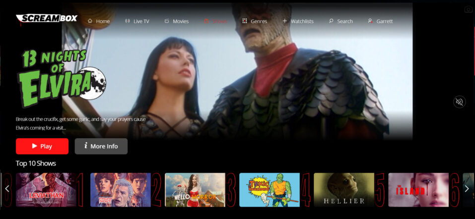 Unfortunately, the quality and quantity of TV shows on Screambox, dropped since our last review. Some killer stuff like Freddy’s Nightmares (once a Screambox exclusive), Masters of Horror, and The Dead Zone vanished from the service. Fewer than 10 series remain, and the best among them are 13 Nights of Elvira, The Toxic Crusaders, and two short docuseries about Hellraiser and Fright Night.
